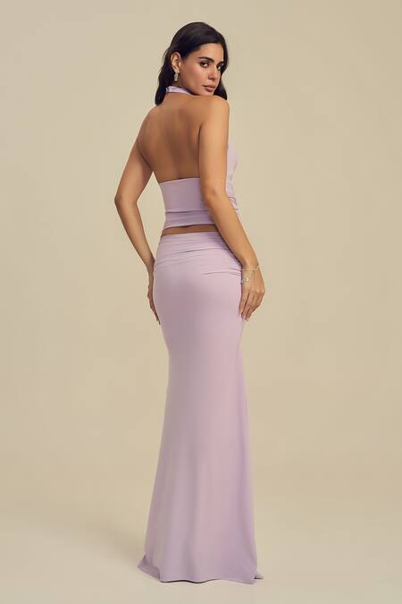Buy_Label Frow_Lavender Lycra Halter Neck Miley Maxi Skirt Set_Online_at_Aza_Fashions