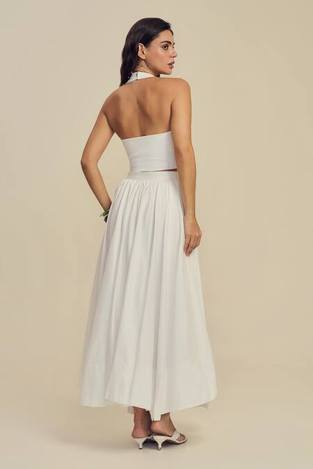 Buy_Label Frow_White Cotton Halter Neck Sylvie Midi Skirt Set_at_Aza_Fashions