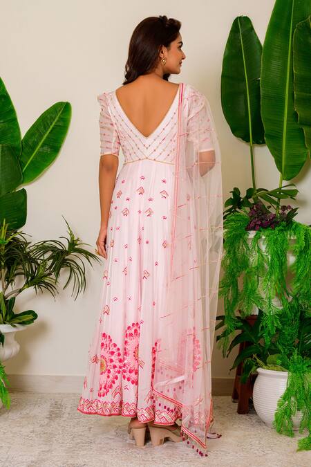 Icy pink anarkali with beads and sequin embroidery. Comes with straight pants and dupatta.