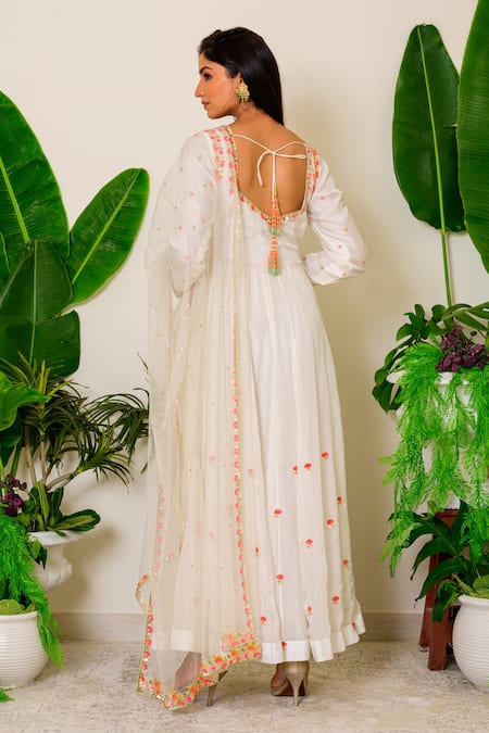 White Silk Zardozi Square Neck Embroidered Anarkali Set