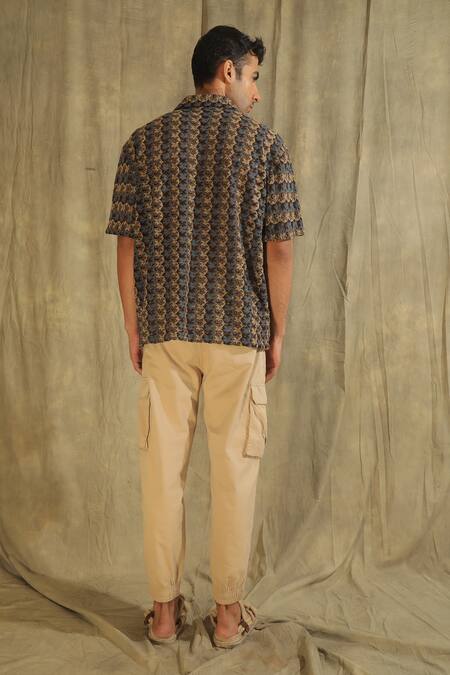 Buy_Label Muslin_Blue Cotton Hand Knitted Shirt_Online_at_Aza_Fashions