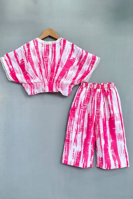 Label Neeti_Pink Cotton Lace Abstract Print Top With Pant _Online_at_Aza_Fashions