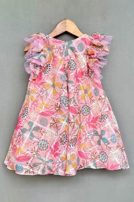 Buy_Label Neeti_Pink Cotton, Linen Bows Bloom Print Ruffled Dress _at_Aza_Fashions