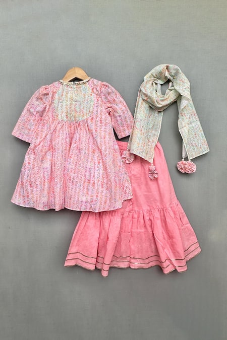 Buy_Label Neeti_Pink Cotton Gota Patti, Tassels Paisley Bloom Print Kurti Sharara Set _at_Aza_Fashions