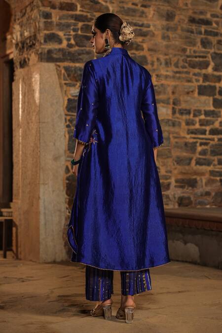 Buy_Label Niti Bothra_Blue Silk Pearls, Sequins, Embroidery Banarasi Resham Kurta And Palazzo Set_Online_at_Aza_Fashions
