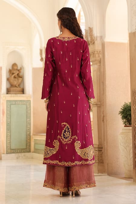 Buy_Label Niti Bothra_Pink Tissue Embroidery, Lace Round Neck Riwayat Paisley Applique Kurta Pant Set