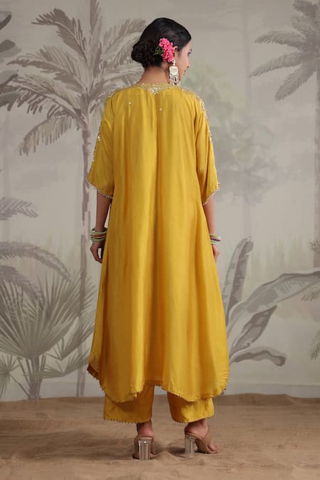 Buy_Label Niti Bothra_Yellow Silk Beads, Sequins Round Roselyn A-line Embroidered Kurta And Palazzo Set _at_Aza_Fashions
