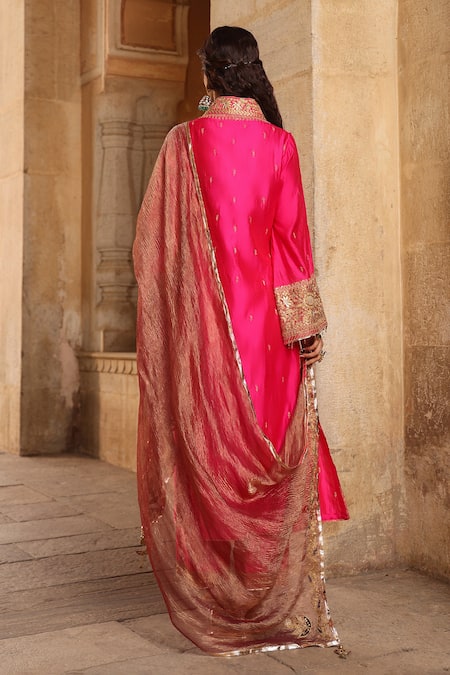 Buy_Label Niti Bothra_Pink Silk Embroidery Collared Butti Straight Kurta With Palazzo _Online_at_Aza_Fashions