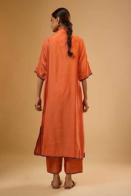 Orange yoke embroidered kurta made from Chiniya silk. Paired with matching pant featuring a relaxed fit.