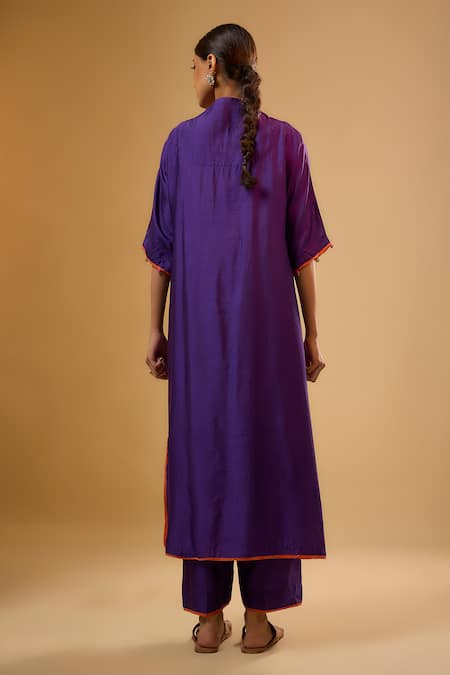Purple kurta featuring dori yoke embroidery and relaxed fit. Paired with matching pant in Chiniya silk fabric.