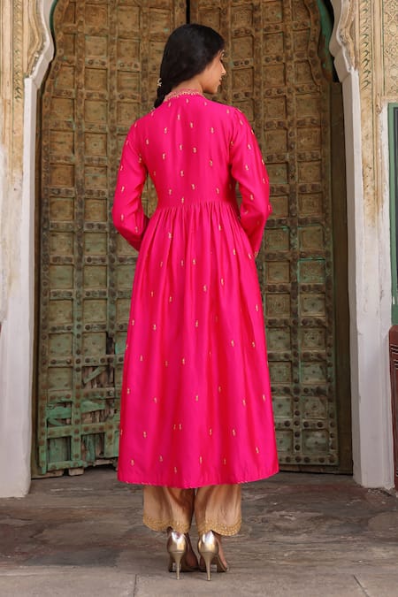 Buy_Label Niti Bothra_Pink Silk Zari, Embroidery V-neck Work Anarkali And Pant Set _Online_at_Aza_Fashions