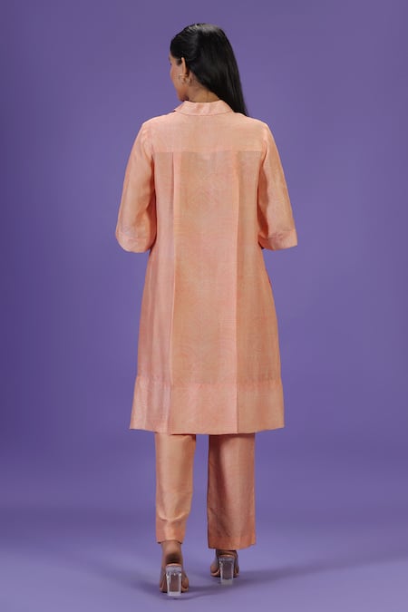 Peach Silk Collared Tangerine Bliss Mid Length Kurta Set