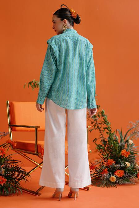 Blue Muslin Printed Stripe Collar Daffodil Shirt