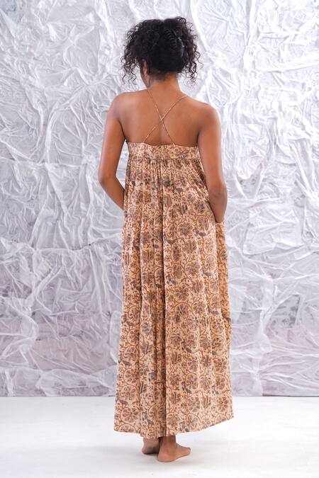 Buy_Label Rama_Multi Color Cotton Hand Block Print Floral Straight Criss-cross Back Dress_at_Aza_Fashions