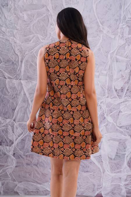 Buy_Label Rama_Multi Color Cotton Hand Block Print Floral Round Dress_Online_at_Aza_Fashions