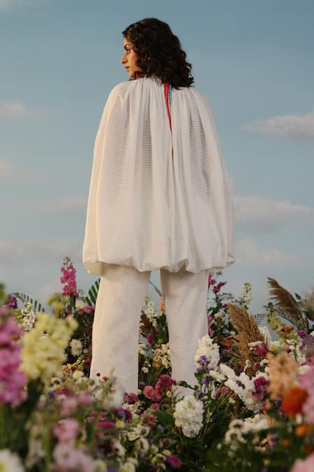 White Muslin Woven Stripe Plunge V Neck Le Mistral Top