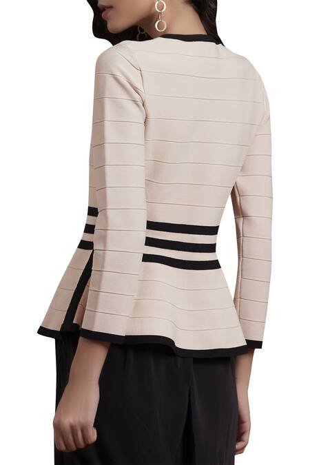 Label Ritu Kumar_Pink Viscose Round Neck Peplum Jacket_Online_at_Aza_Fashions