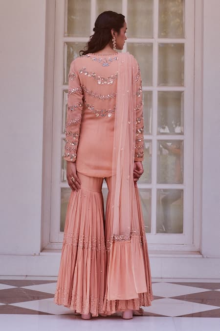 Peach Round Embroidered Kurta Set