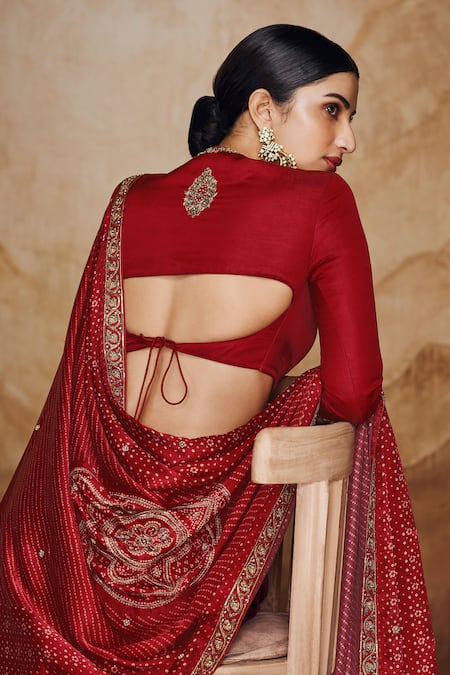 Red Viscose, Linen, Satin Zari, Embroidery, Beads Bandhani Print And Lehenga Set