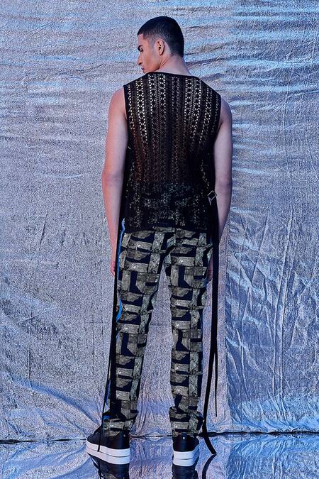 Shop_Line Out Line_Black Lace Slipon Vest T-shirt_Online_at_Aza_Fashions