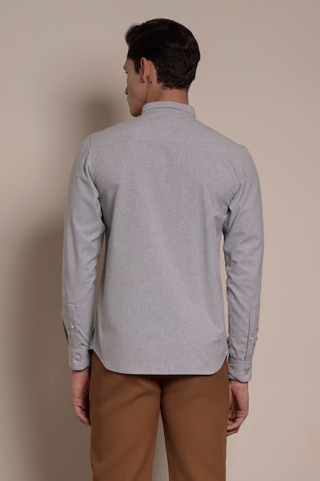 A grey melange poplin & melange shirt featuring a colorblock design, collar neckline, full sleeves & a concealed placket.