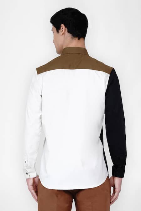 Multicolored shirt with cut-sew colorblock panels and full sleeves.