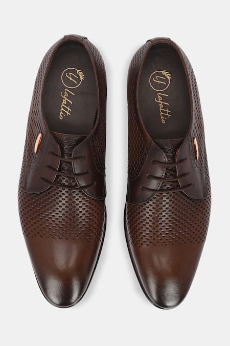 Buy_Lafattio_Brown Textured Leather Lace-up Shoes _Online_at_Aza_Fashions