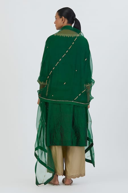 Green Organza Embroidered Thread Mayar Butti Dupatta