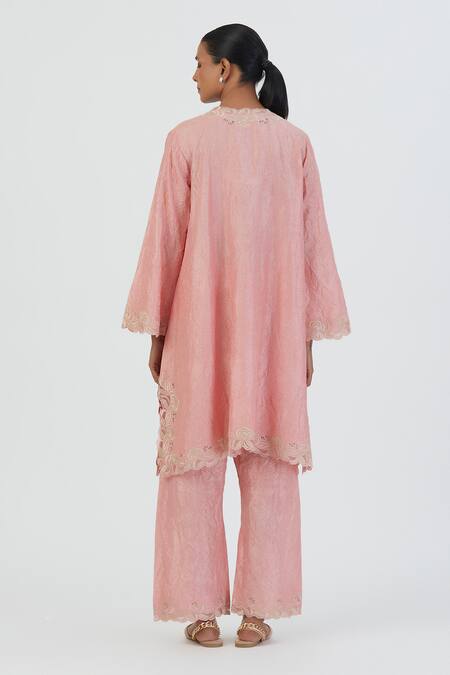 Pink Silk Embroidery Petunia Lace V Naaz Border Kurta With Palazzo