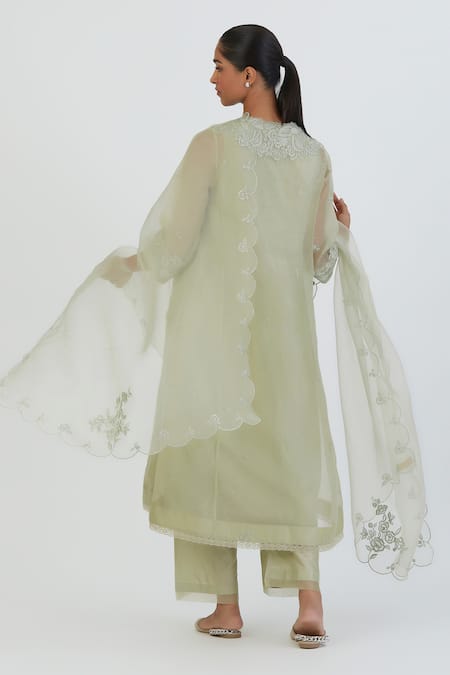 Intricate thread embroidery along the edges, Delicate floral motifs embroidered throughout