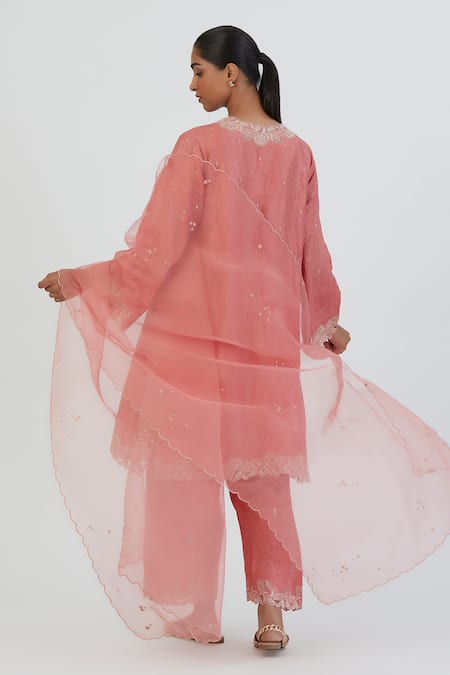 Intricate thread embroidery throughout the dupatta, Scalloped edges for a finished look