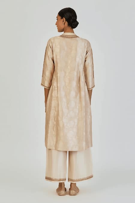 Ivory Brocade Woven Marodi Mandarin Collar Razia Silk Floral Kurta With Pant