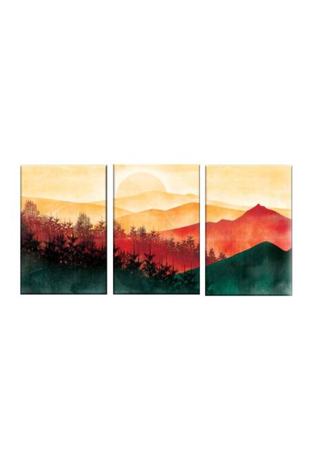 Multi Color Canvas Handmade Landscape Painting Set Of 3
