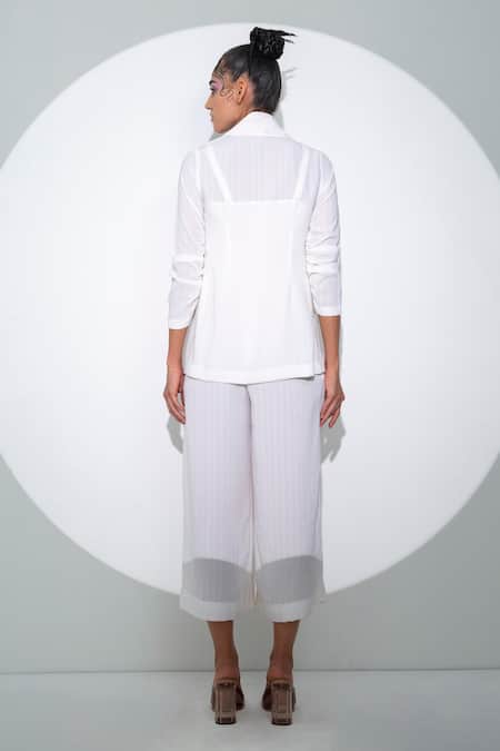 White Crepe Collared Lapel Jacket