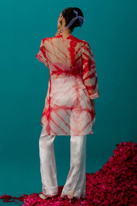 Orange Silk Organza Embroidered Sequin Round Batik And Work Tunic