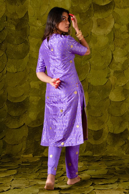 Purple Chintamani Silk Hand Embroidered Aari Tangi Straight Kurta And Pant Set
