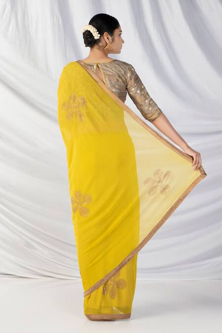 Buy_Latha Puttanna_Yellow Georgette, Silk Embroidery, Sequins, Zari, Diamonds Floral Saree Set_Online_at_Aza_Fashions