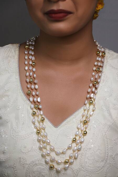 Ishhaara_Gold Plated Layered Baroque Pearl Necklace _Online_at_Aza_Fashions