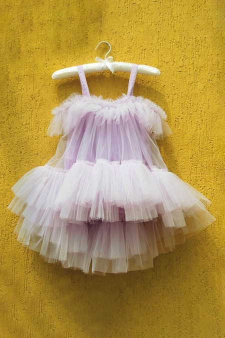 Buy_Ranikidswear_Purple Lining Satin Layered Ruffle Dress_at_Aza_Fashions