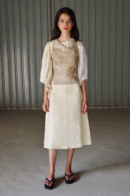 Linear tonal stitches >Broken graphic pattern, Note:, Inner dress worn by the model is not for sale