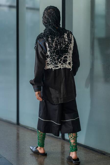 Only the hand knitted tee is being sold. Head scarf, inner shirt, pant & stockings worn by the model are not for sale.