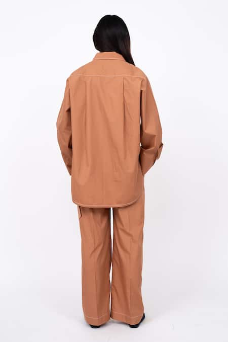 Caramel orange tunic shirt featuring full sleeves, half placket opening & a patch pocket at the shoulder