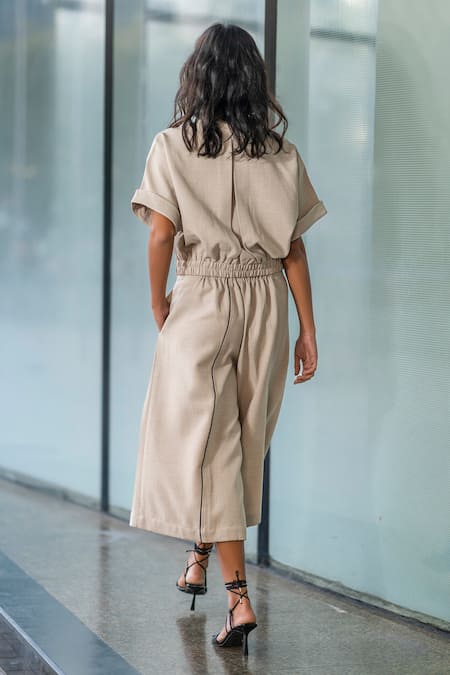Beige bomber crop top featuring a V neck and half sleeves with contrast linear detailing
