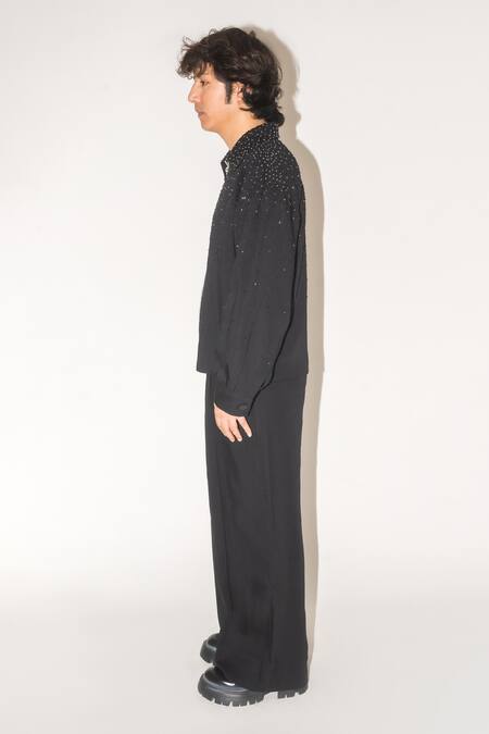 Black Linen Silk Blend Embroidered Bead Stargaze Jacket