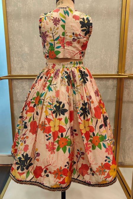 Multi Color Silk Embroidery Floral Dori Lehenga Set