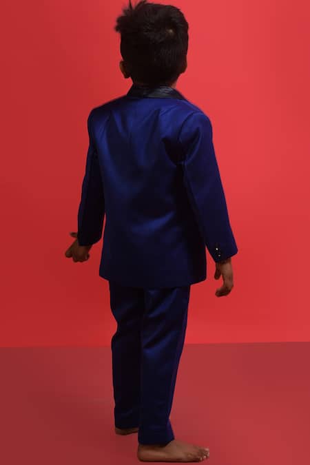 Blue satin blazer featuring a lapel neckline and full sleeves