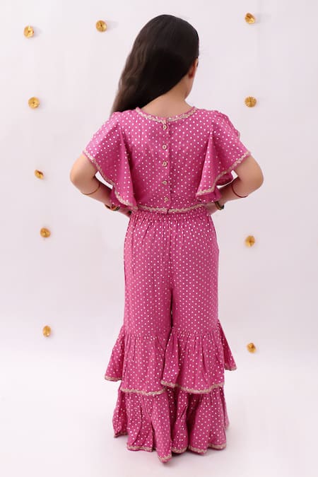 Pink Rayon Embroidery Khilkhilahat Top And Floral Pattern Flared Pant Set