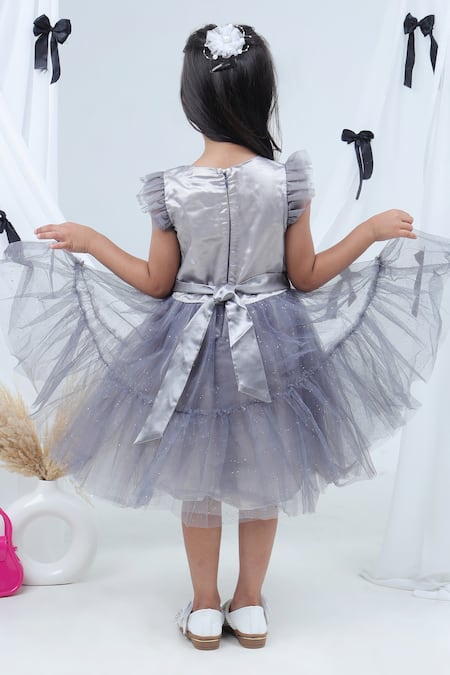 Gray Net, Polyester Bows, Glitter, Ribbons Sleeveless Tiered Dress