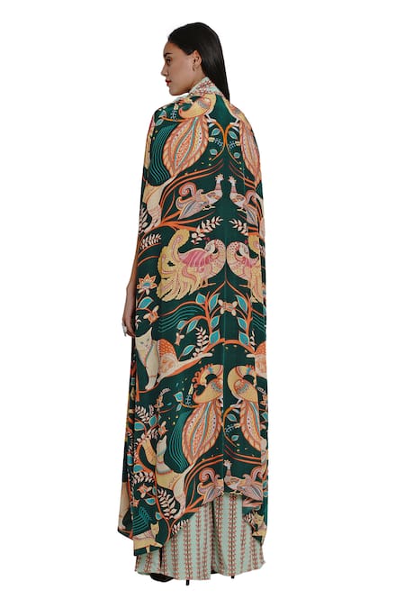 Buy_Limerick By Abirr N' Nanki_Green Crepe Asymmetric Printed Cape_Online_at_Aza_Fashions