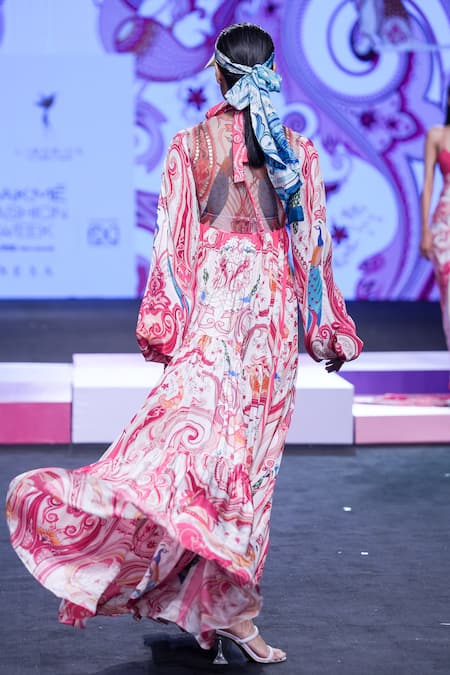 Multi Color Crepe Embroidered Paisley Hiya Balloon Sleeve Tiered Dress